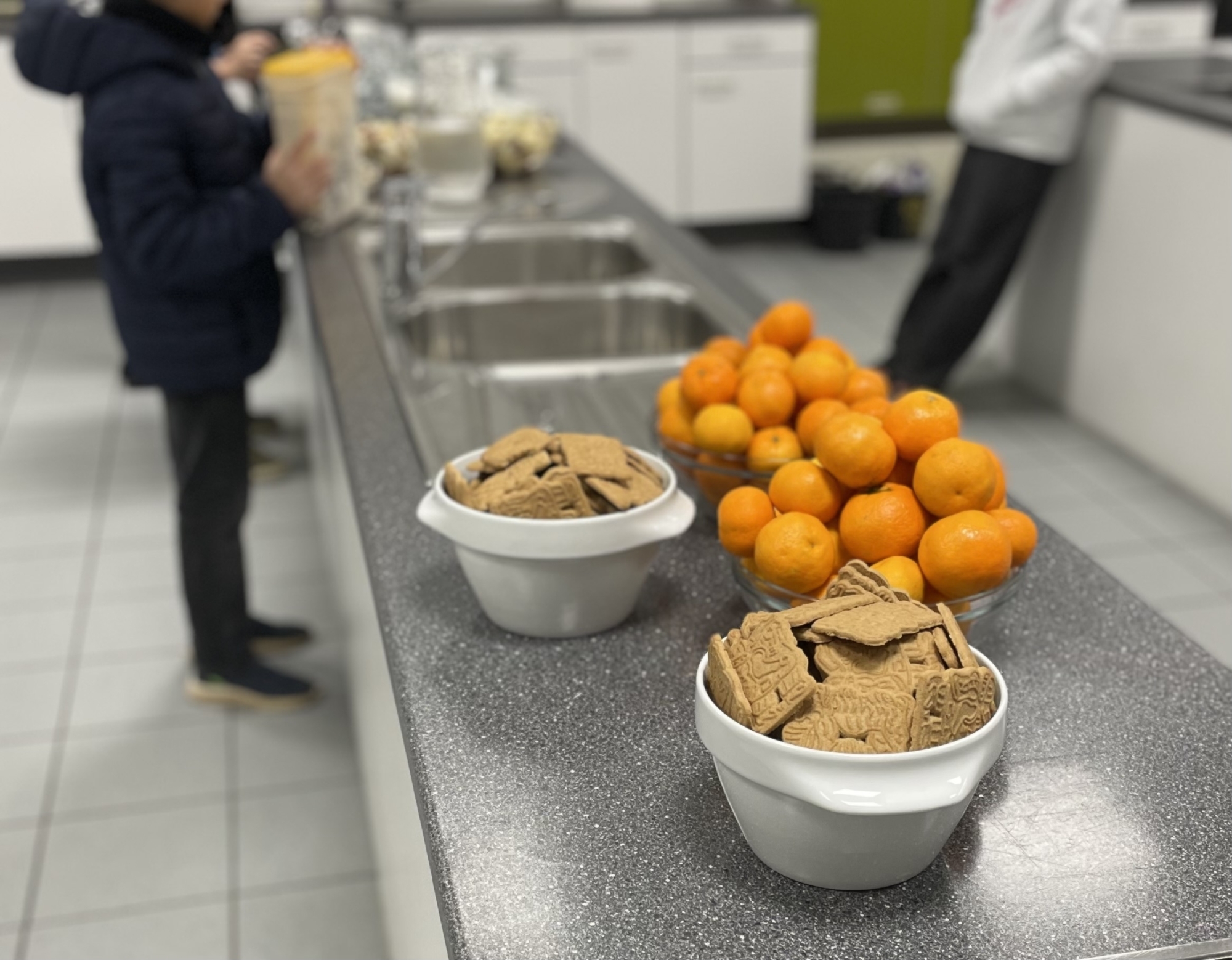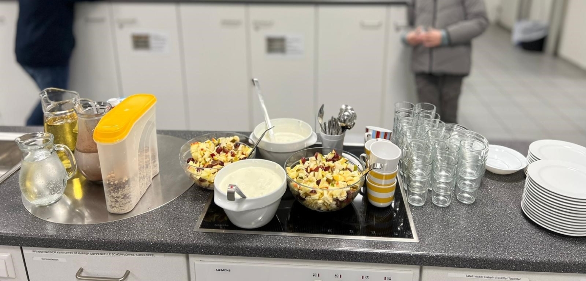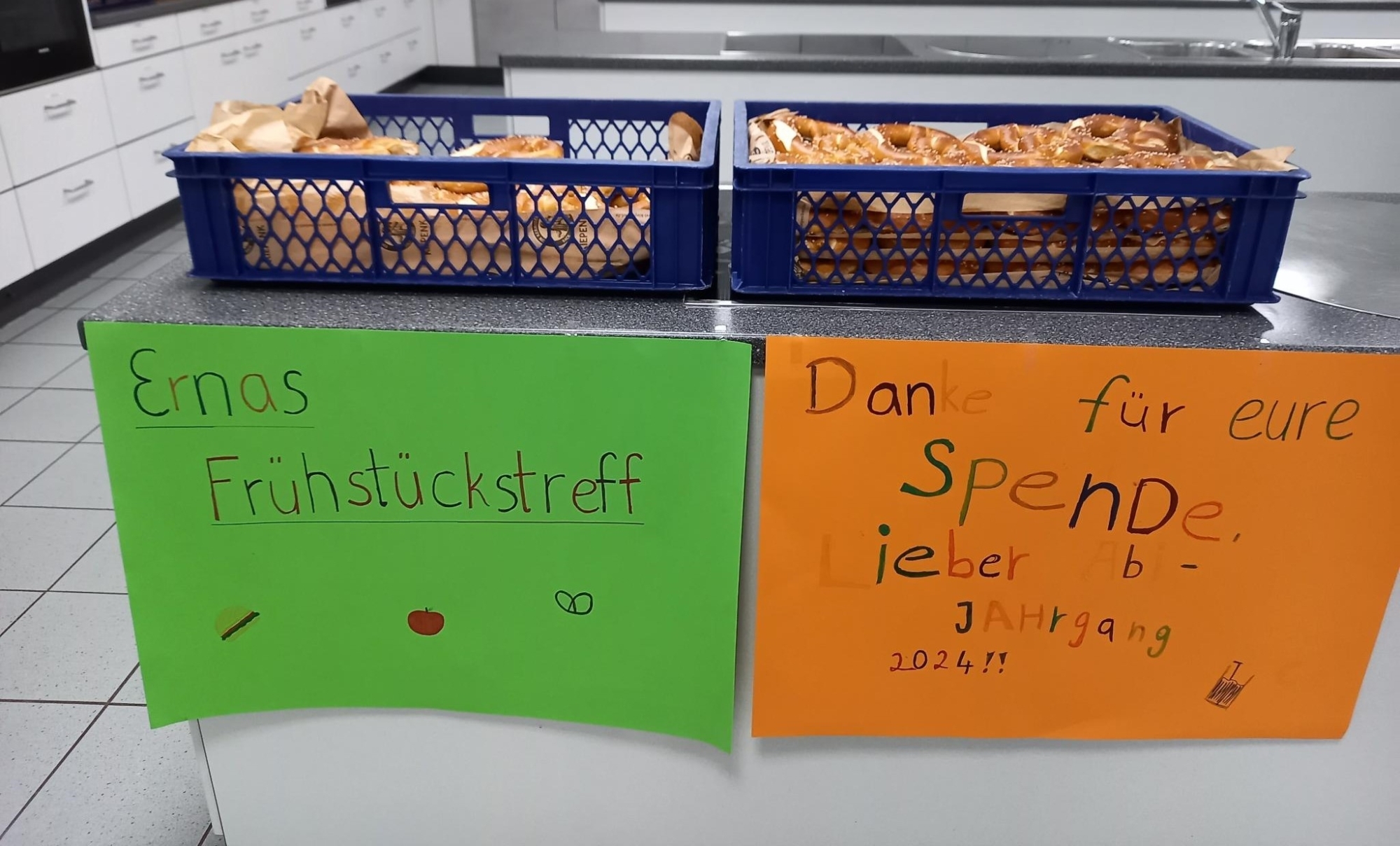 Jeden Dienstag und Freitag ab 7:15 Uhr, also vor der ersten Unterrichtsstunde, sind alle Schüler:innen herzlich eingeladen, in den Räumen der Hauswirtschaft gemeinsam zu essen, zu plaudern und entspannt in den Schultag zu starten. Das Angebot ist für alle Schüler:innen kostenlos.