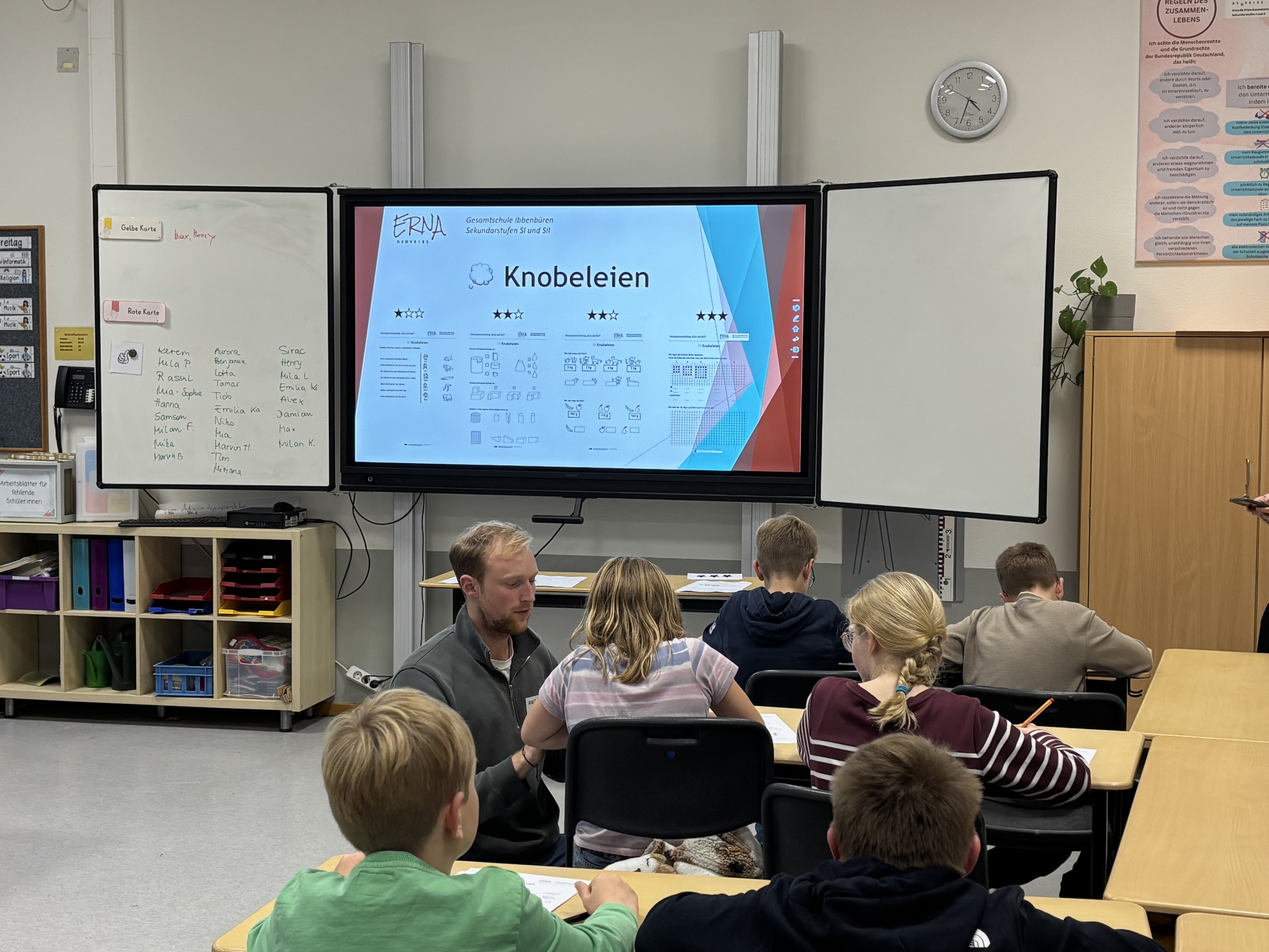 Mit dem Beginn der herbstlichen Tage beschäftigen sich viele Familien der Viertklässler*innen mit der Frage, wie es nach der 4. Klasse weitergehen soll. Um ihnen einen ersten Einblick in unseren Schulalltag zu ermöglichen, haben wir am Freitag, den 7. November 2025, zu unserem Schnuppernachmittag „Erna und Du“ eingeladen – und über 150 Kinder sind unserer Einladung gefolgt.